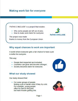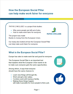 After three years of exploring inclusive labour markets, we have summarized the PATHS2INCLUDE project’s research findings and policy recommendations into a series of 9 factsheets. They are based on our policy brief series.